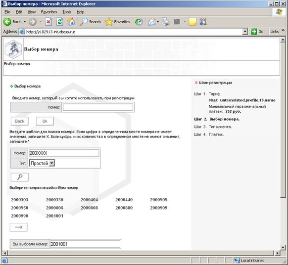Абонент может самостоятельно выбрать номер телефона из предложенного списка свободных номеров. - Регистрация первоначального платежа.